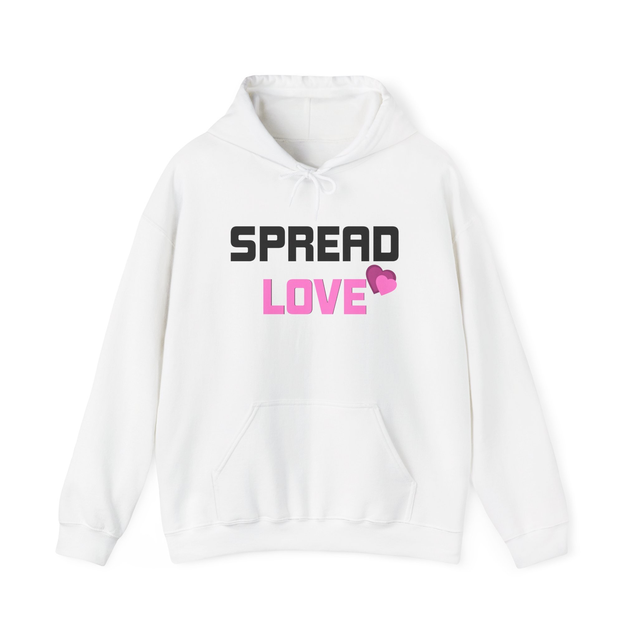 This cozy hoodie carries a simple, brave message: gentle action beats anger. Soft white fabric cradles bold typography — “SPREAD” in charcoal above a warm pink “LOVE” on the front, and a call to “UNLEARN HATE” across the back with tiny heart icons. Wear it when you want your values to speak without shouting. The roomy kangaroo pocket and double-lined hood keep you comfortable on chilly mornings, while the tubular knit and tear-away label make it easy to layer all day. It’s the kind of sweatshirt you pull on for neighborhood walks, late-night study sessions, or meetups where kindness matters more than words.